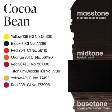 Cocoa Bean to chłodny, głęboki brąz espresso — najciemniejszy odcień w Chocolate Collection. Jest częścią LUXE Chocolate Collection autorstwa Aminy Sadiq. Luxe Chocolate Collection oferuje sześć pigmentów dostosowanych do melaninowanych odcieni skóry, idealnych do tworzenia oszałamiających brwi u różnych klientek. Stworzony z artystką PMU Aminą Sadiq, zapewnia doskonałe rezultaty po wygojeniu.